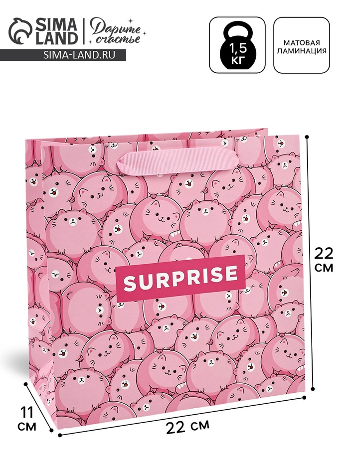 Пакет подарочный ламинированный квадратный, упаковка, Surprise, 22×22×11 см
