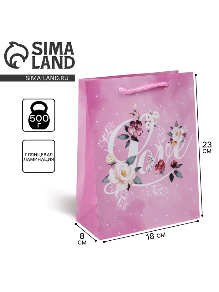 Пакет подарочный ламинированный, упаковка, Love, MS 18×23×8 см