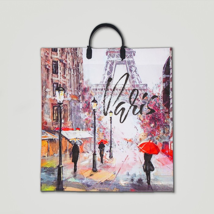 Пакет «Дождь в Париже», полиэтиленовый с пластиковой ручкой, 38×45 см, 100 мкм