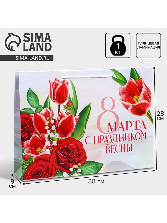 Пакет подарочный ламинированный, упаковка, «8 марта», L 28×38×9 см