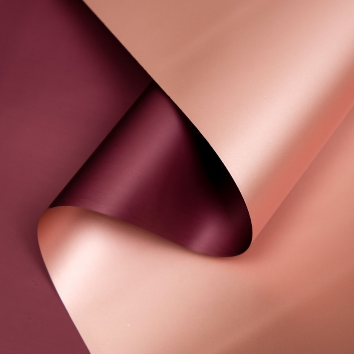 Пленка матовая для цветов и букетов, двухсторонняя, «Зефир», бордовый - бежевый, 57±1 см × 5 м