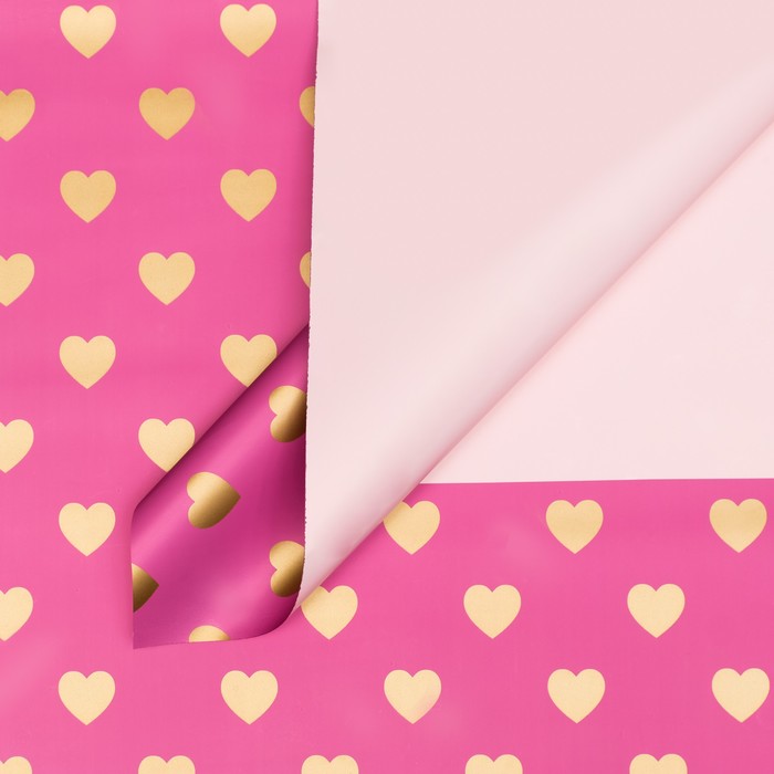 Пленка матовая для цветов «Золотые сердца», розовый, 57×57 см ±5% см