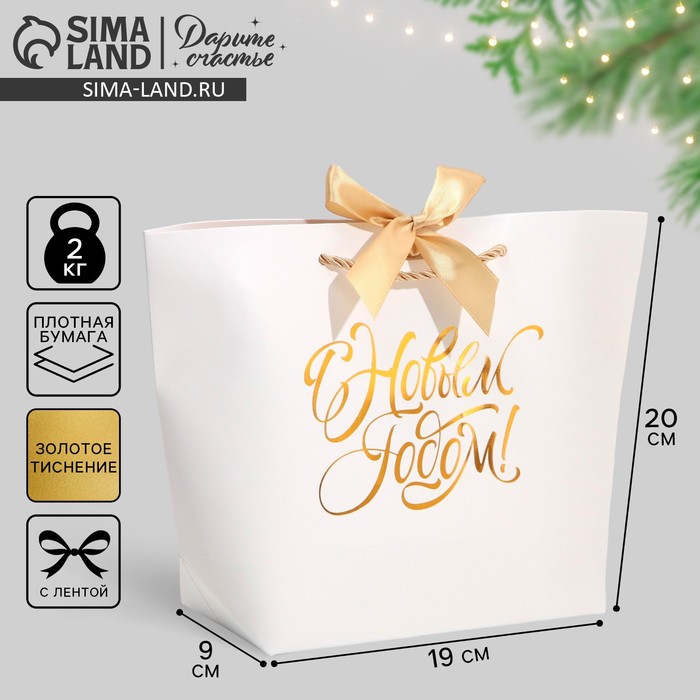 Пакет подарочный новогодний «С Новым годом», 19×20×9 см