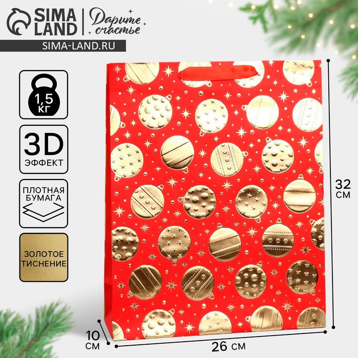 Пакет подарочный новогодний «Новогодние шарики» 32×26×10 см