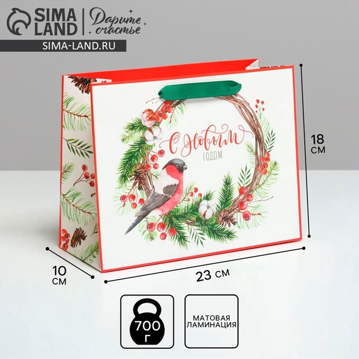 Пакет подарочный новогодний ламинированный «Новогодний венок», XXL 61×46×20 см