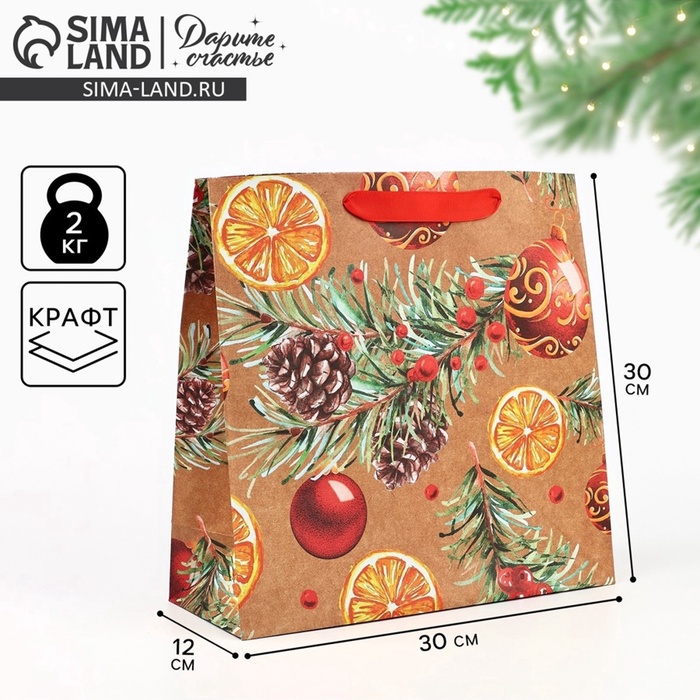 Пакет подарочный новогодний крафтовый квадратный «Новогоднее настроение», 30×30×12 см
