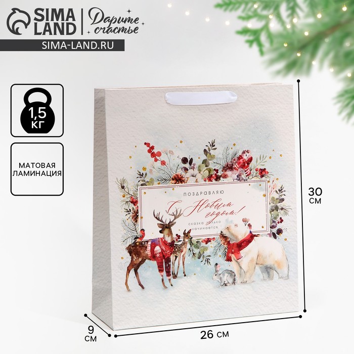 Пакет подарочный новогодний ламинированный «Сказочного Нового года», ML 21 х 25 х 8 см