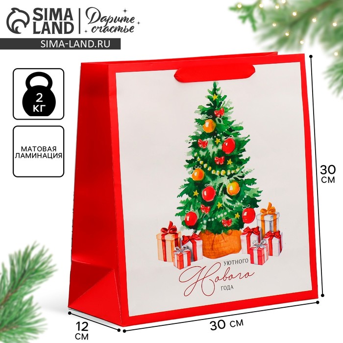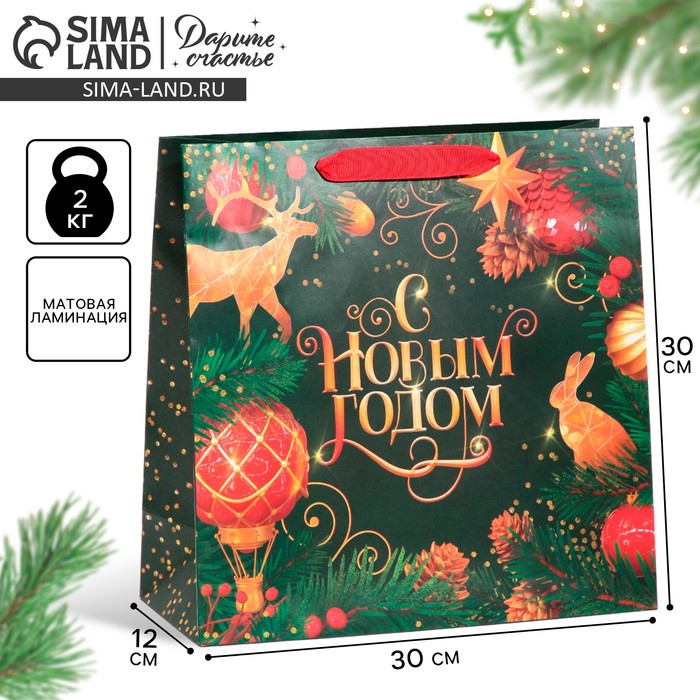 Пакет подарочный новогодний ламинированный «С Новым годом», M 30×26×9 см