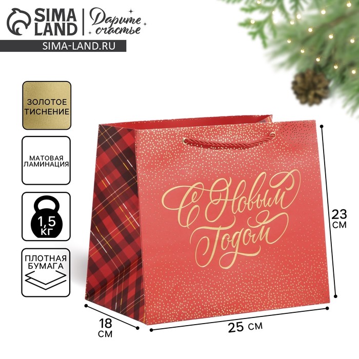 Пакет подарочный новогодний ламинированный «С Новым годом», 25×23×18 см