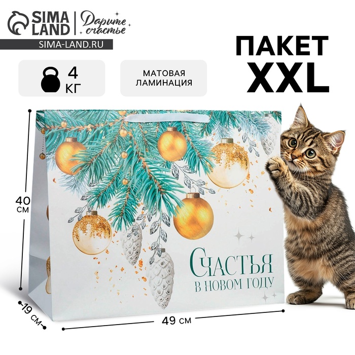 Пакет подарочный новогодний ламинированный «Счастья в Новом году», XL 49×40×19 см