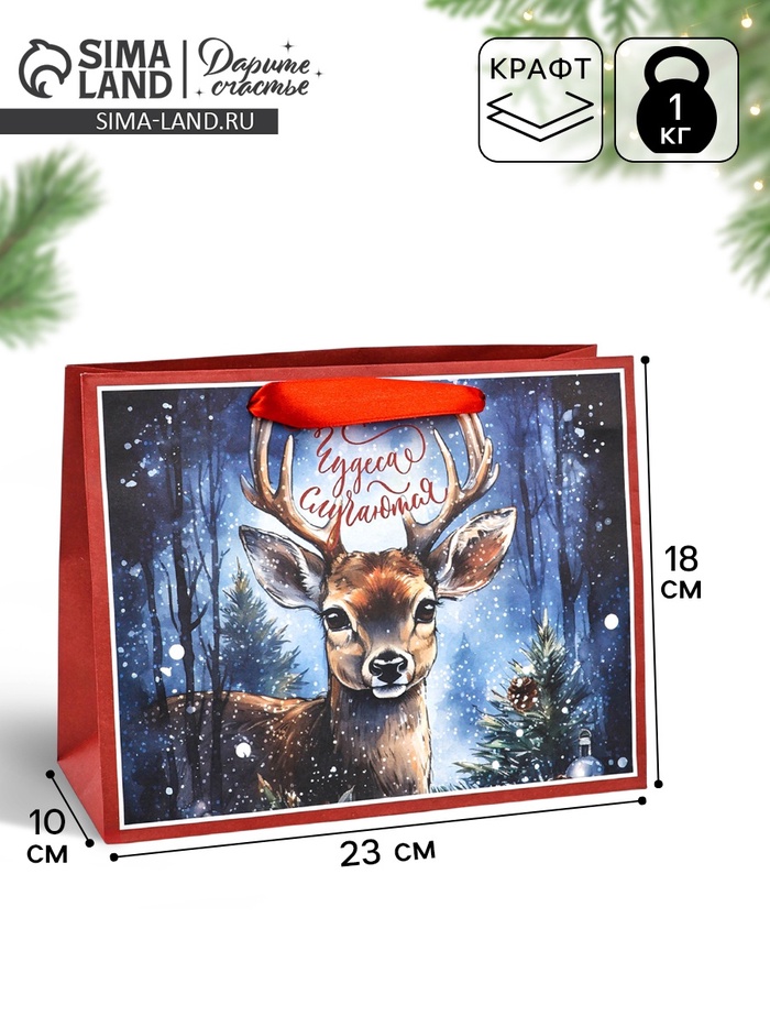 Пакет подарочный новогодний крафтовый, «Чудеса случаются», 23×18×10 см