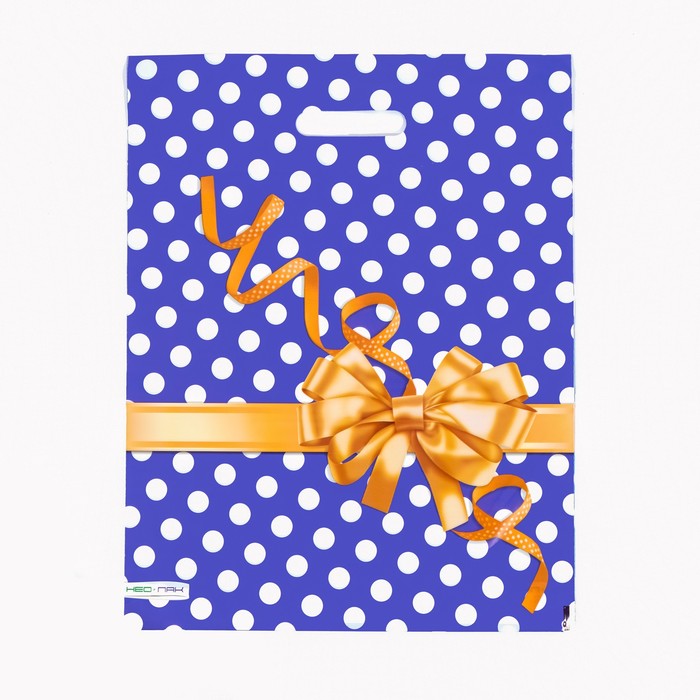 Пакет "Золотой бантик", полиэтиленовый, с вырубной ручкой, 38 х 47 см, 60 мкм