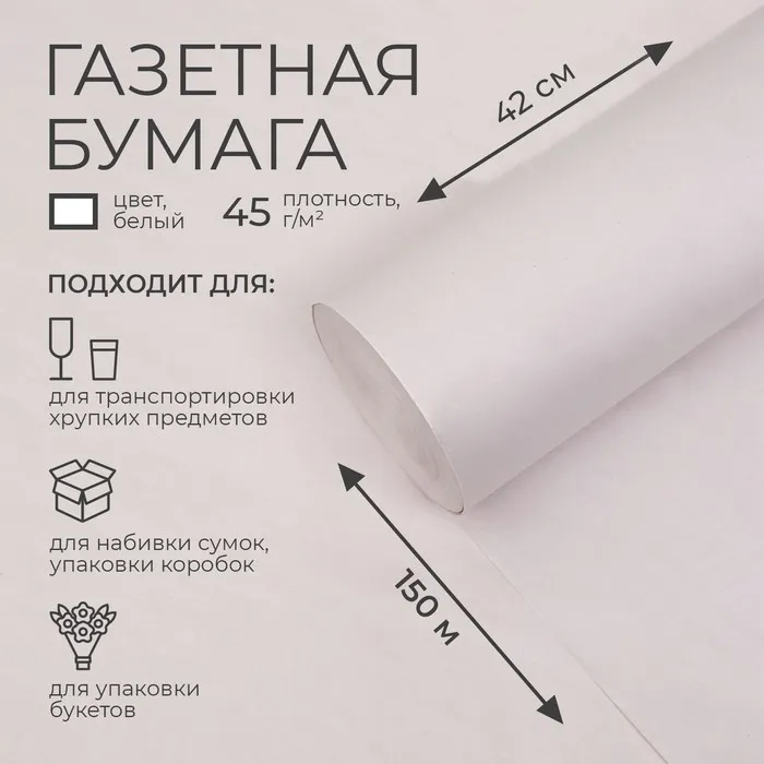Бумага газетная 420 мм × 150 м, 45 г/м²