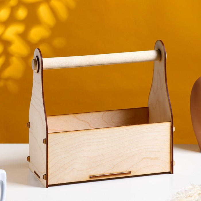 Кашпо деревянное 24.5×13.5×9.5(25) см Стелла Клик, с ручкой, натуральный