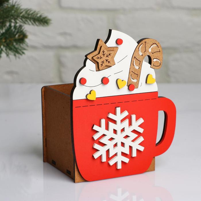 Кашпо деревянное «Новогодняя кружка», для подарков, цветов, 12×9×15 см