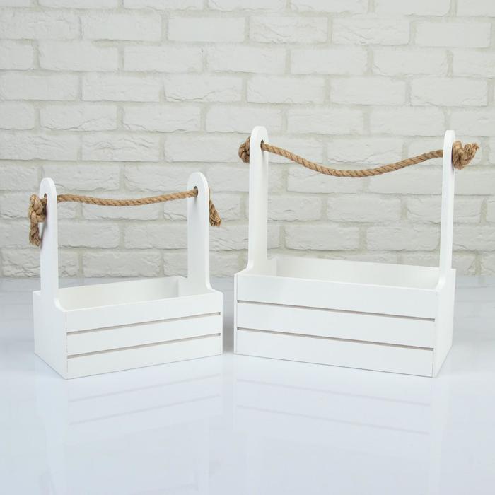 Набор кашпо деревянных 2 в 1 (25×15×30; 21×12×23 см) "Dear", ручка канат, белый