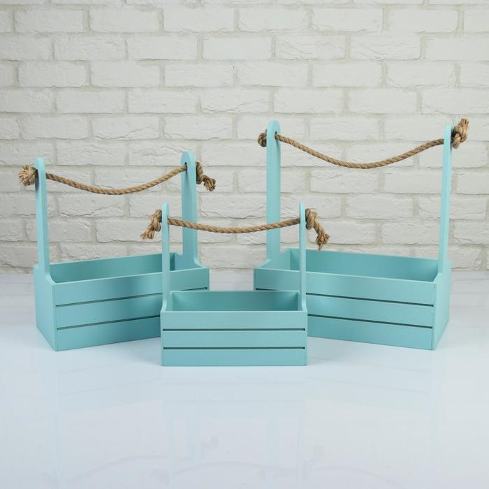 Набор кашпо деревянных 3 в 1 (30.5×18.5×35; 25.5×15×30; 20×12×23) "Аром", серо-голубой