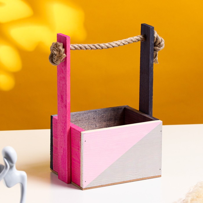 Кашпо деревянное, 15×12×8(25) см "С Любовью", ручка верёвка, гравировка