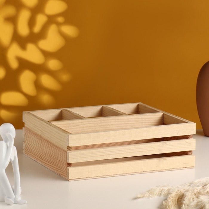 Кашпо деревянное с 4-мя отсеками 25х22х8,5 натуральное