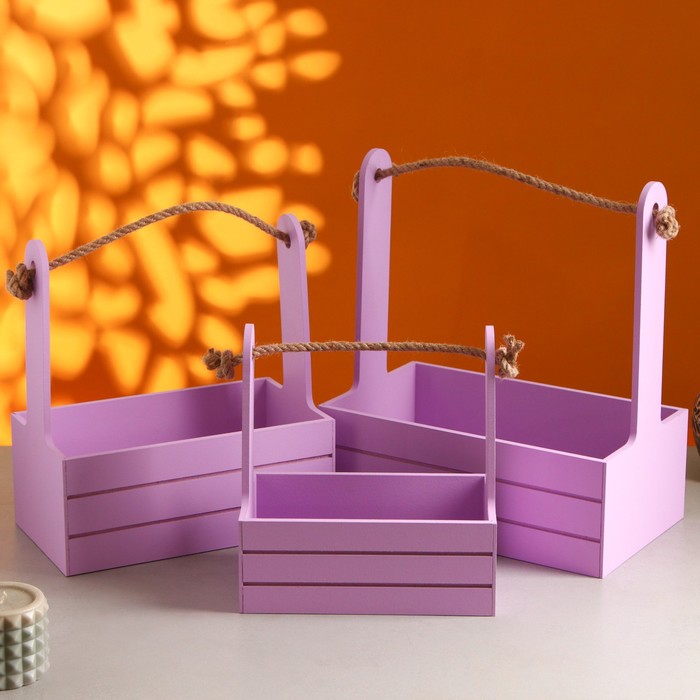 Набор кашпо деревянных 3 в 1 (29×18×33; 25×15×30; 21×12×23) "Аром", Сиреневый