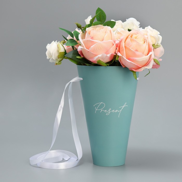 Пакет для цветов конусный круглый складной на лентах «Present», 15 х 23.3 х 7.5 см