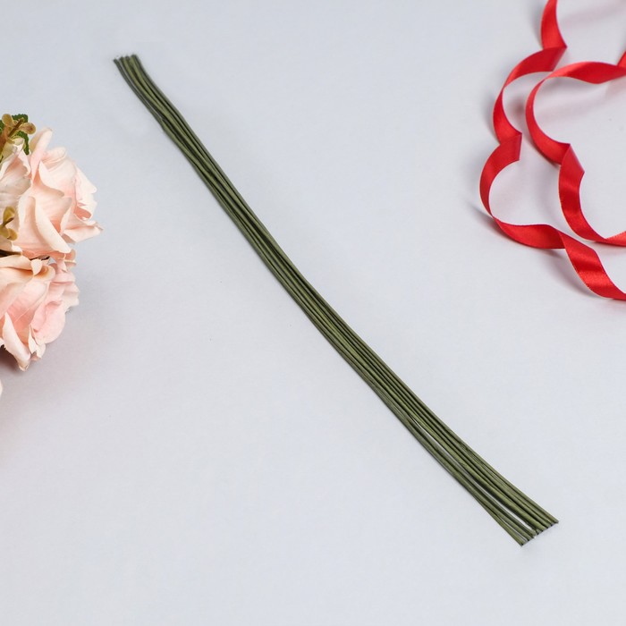 Флористическая проволока в бумажной оплётке «Зелёная», длина 60 см, 2 мм, набор 10 шт.
