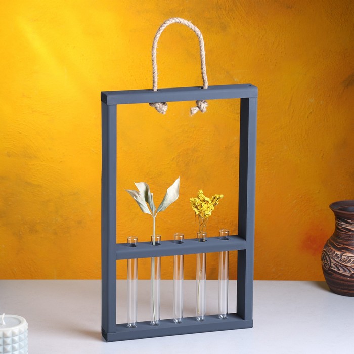 Кашпо деревянное 26×5×40 см с 5 колбами 15 см "Рамка Экстра Слим", чёрный Дарим Красиво