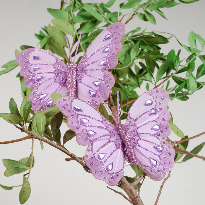 Бабочка для декора и флористики, на прищепке, сиреневая, пластиковая, 1 шт., 9 см