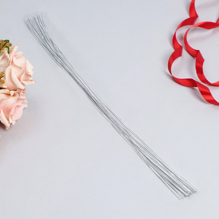 Флористическая проволока в бумажной оплётке "Белая", длина 60 см, 0,8 мм, набор 50 шт