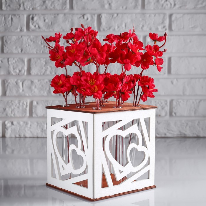 Кашпо деревянное 15×15×15 см с 9 колбами "Два сердца", морёный белый Дарим Красиво