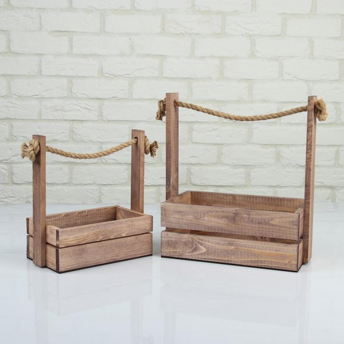 Набор кашпо деревянных 2 в 1 (25.5×15×30; 20×12×23 см) "Аром", ручка канат, состаренный дуб