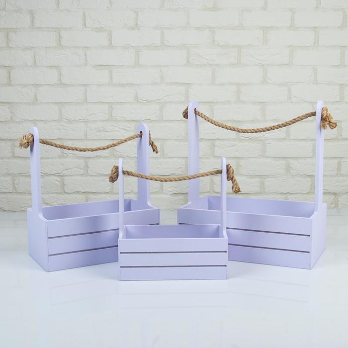 Набор кашпо деревянных 3 в 1 (29×18×33; 25×15×30; 21×12×23) "Аром", лаванда