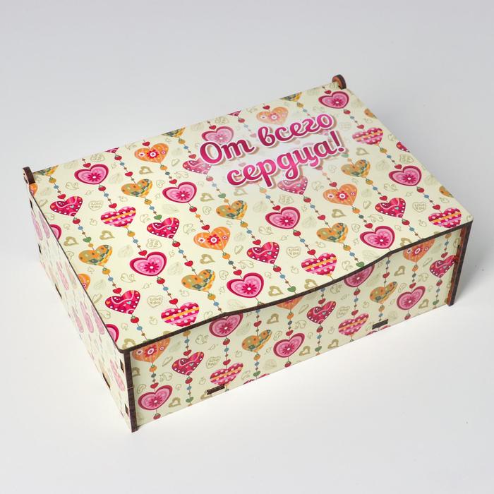 Ящик деревянный подарочный 21х14х7 см "От всего сердца!", шкатулка