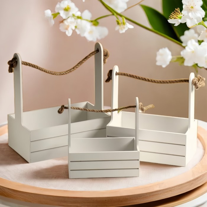 Набор кашпо деревянных 3 в 1 (29×18×33; 25×15×30; 21×12×23) "Аром", белый