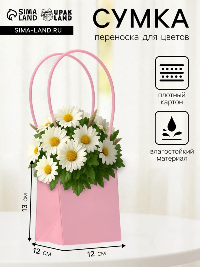 Сумка для цветов, квадратная, розовая, влагостойкая, 13×12×12 см