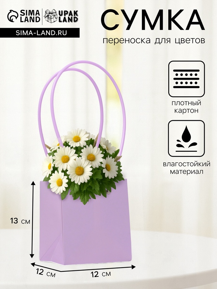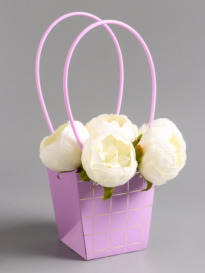 Сумка для цветов, квадратная, сиреневая, влагостойкая, 13×12×12 см