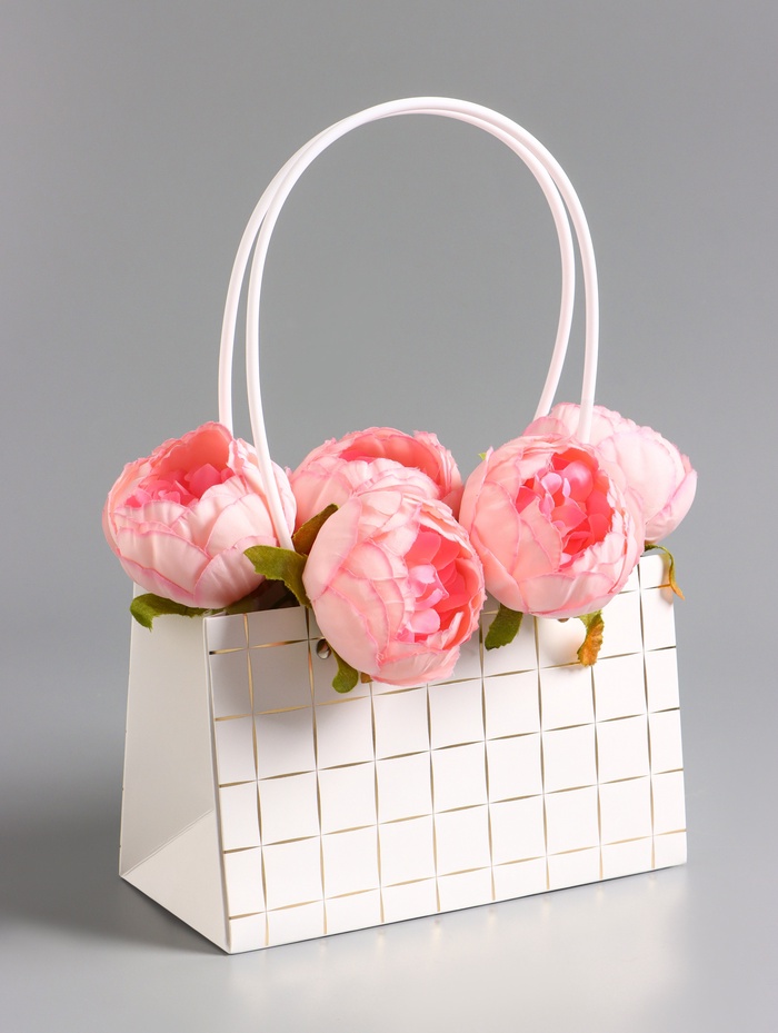 Сумка переноска для цветов, влагостойкая, белая, с тиснением, 22×10.5×13.5±5% см