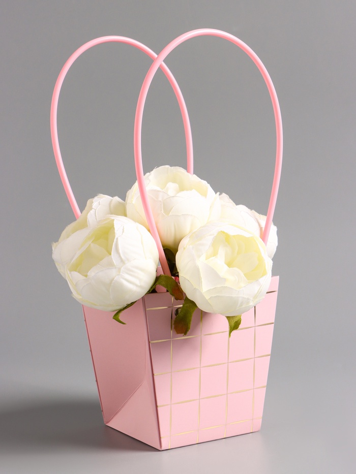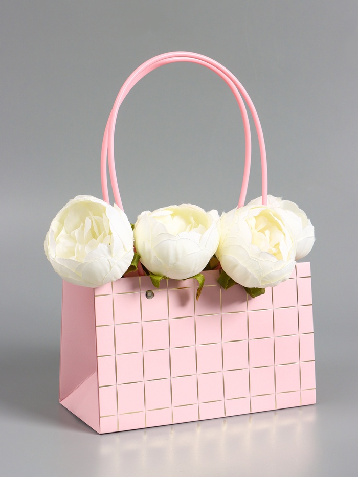 Сумка переноска для цветов, влагостойкая, розовая, с тиснением, 22×10.5×13.5±5% см