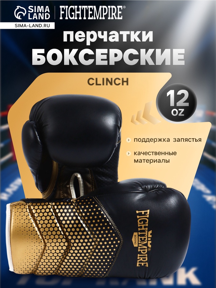Перчатки боксёрские FIGHT EMPIRE, CLINCH, чёрно-золотые, размер 12 oz