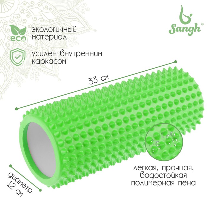 Ролик массажный Sangh, 33х12 см, цвет зелёный