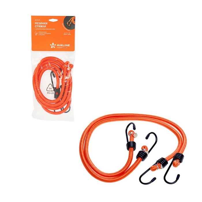 Резинка для крепления багажа Airline, 80 см, d8 мм, металлические крючки, набор 2 шт