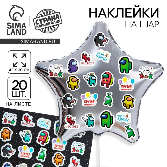 Наклейки на шары «С ДР. Космические игры», 20 шт.
