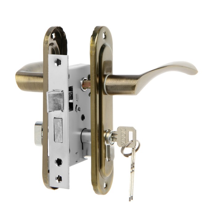 Замок врезной LOCKLAND RD001, с ручкой, 3 ключа, цвет бронза