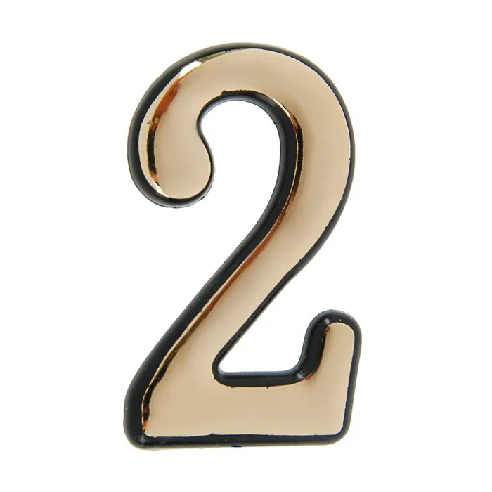 Цифра дверная 2, пластиковая, цвет золото