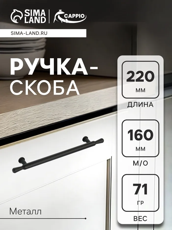 Ручка-скоба CAPPIO RS145, м/о 160 мм, цвет черный