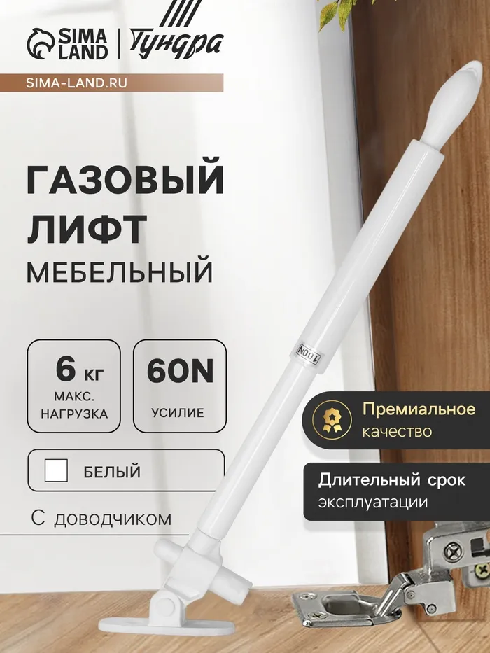 Газовый лифт ТУНДРА GG060WH, 60N, с доводчиком, белый, 2 шт. TMP