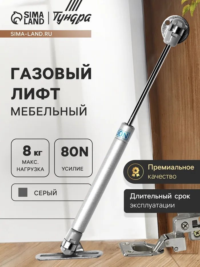 Газовый лифт ТУНДРА GG080GR, 80N, с доводчиком, серый