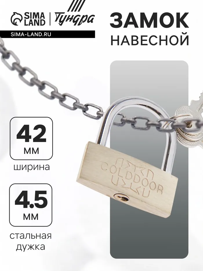 Замок навесной, 42×66 мм, 3 ключа