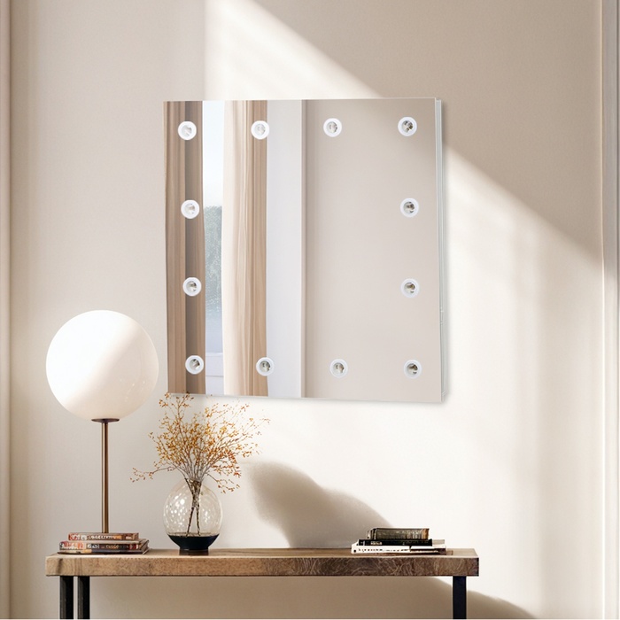 Зеркало настенное гримерное, 12 лампочек, 60×60 см