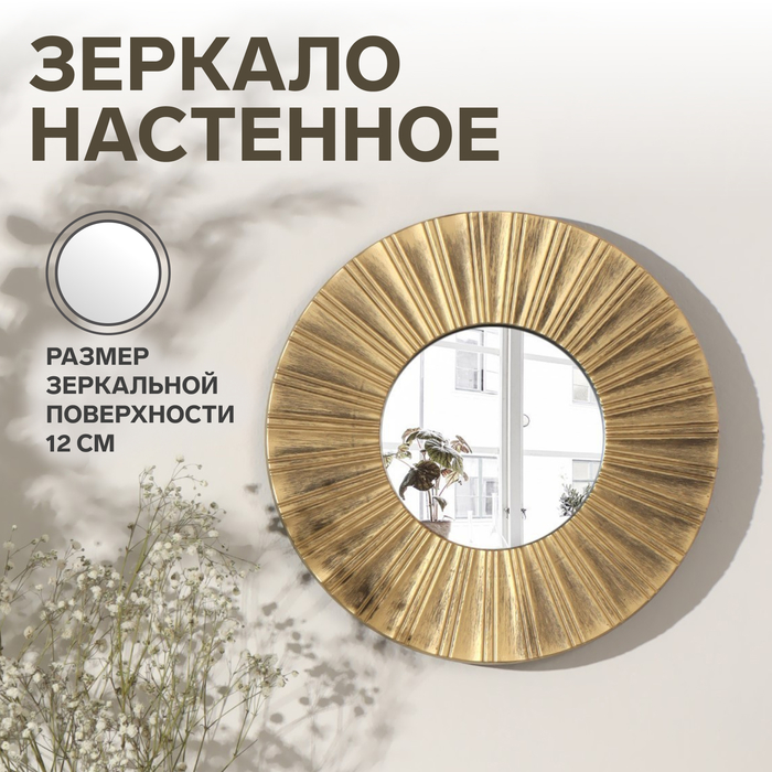 Зеркало настенное «Лучи», d зеркальной поверхности 12 см, цвет «состаренное золото»